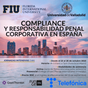 This conference co-organized by the University of Valladolid in Spain and Florida International University will address the key aspects of Compliance, Integrity, Forensic, Internal Investigations and Criminal Liability of Legal Entities in Spain. The event can be attended online (both synchronous and asynchronous) or in person, at the College of Law of Florida International University.