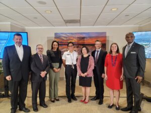 As part of their schedule, they had an exchange of views with the European Consul Generals present in Miami – including Germany, Italy and Romania – on “Maritime Transport Decarbonization – Initiatives and Best Practices” at a meeting hosted by the Consul General of France in the framework of France’s Presidency of the European Union. The event was also attended by representatives from NRC and CMA/CGM.