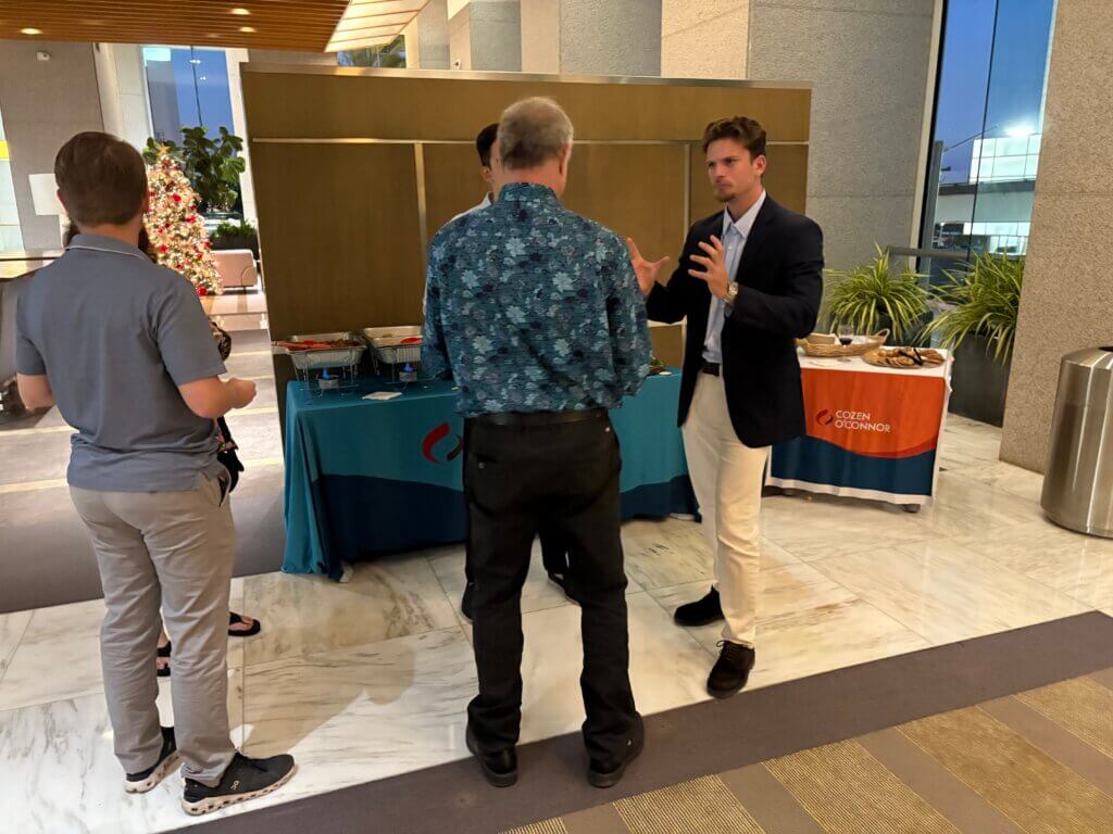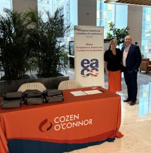 Members and Friends braved Miami’s legendary evening traffic to join EACC Florida and Cozen O’Connor on Thursday November 21st for EACC Florida’s first Beaujolais Nouveau Day Business Mixer. The event was hosted by President’s Circle Member Cozen O’Connor in the Lobby of the Southeast Financial Center.