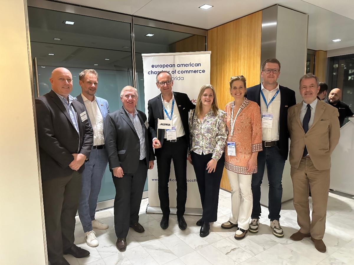 Left to right: Scott Bettridge (Cozen O'Connor), H.E. Consul General of Belgium Michel Gerebtzoff, Alan Sutin (EACC Florida President & Greenberg Traurig), Bart Steuker (CEO AGORIA), Isabel Michiels, Julie de Bergeyck, Frederick Tibau (Team AGORIA), Manuel Molina (Honorary Consul of Belgium in Miami) | |