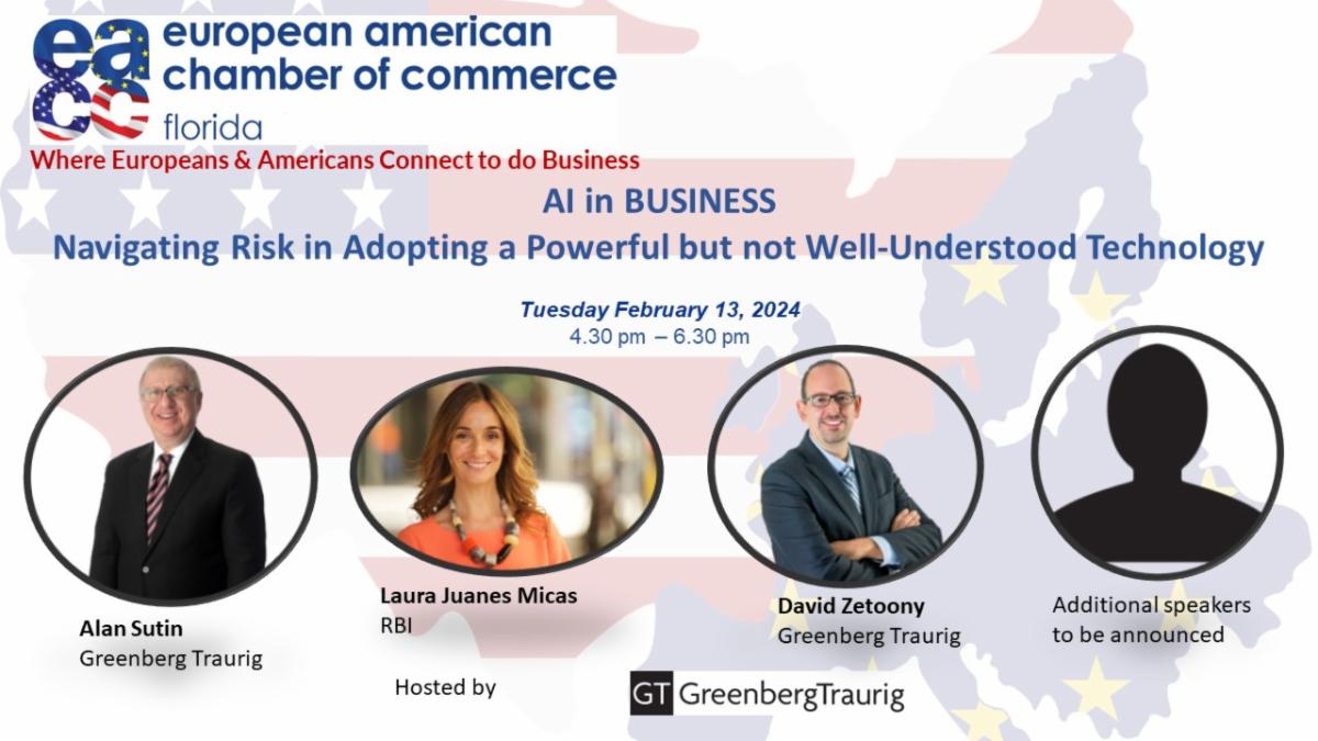 This program will look at some of the key issues companies involved in transatlantic business are facing as it relates to the use of AI, how regulatory frameworks are being developed on both sides of the Atlantic, and how companies can manage risk in the still muddled AI waters.