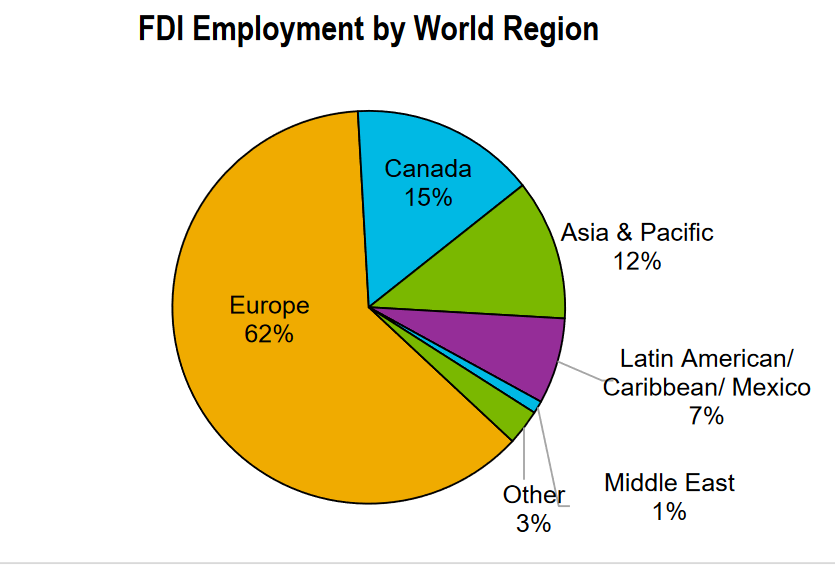 According to the Bureau of Economic Analysis, Florida ranks 5 th in the nation in terms of foreign direct investment employment, and 1st in the Southeastern U.S. with a total of 366,100 jobs supported by majority foreign-owned companies.” Most notably, majority foreign-owned companies from Europe account for the largest share BY FAR at 62 percent of all FDI employment in Florida. That represents 227,600 jobs with the UK, Germany, France and Switzerland in the top 5, and Ireland, the Netherlands and Italy in the top 10. Read more.