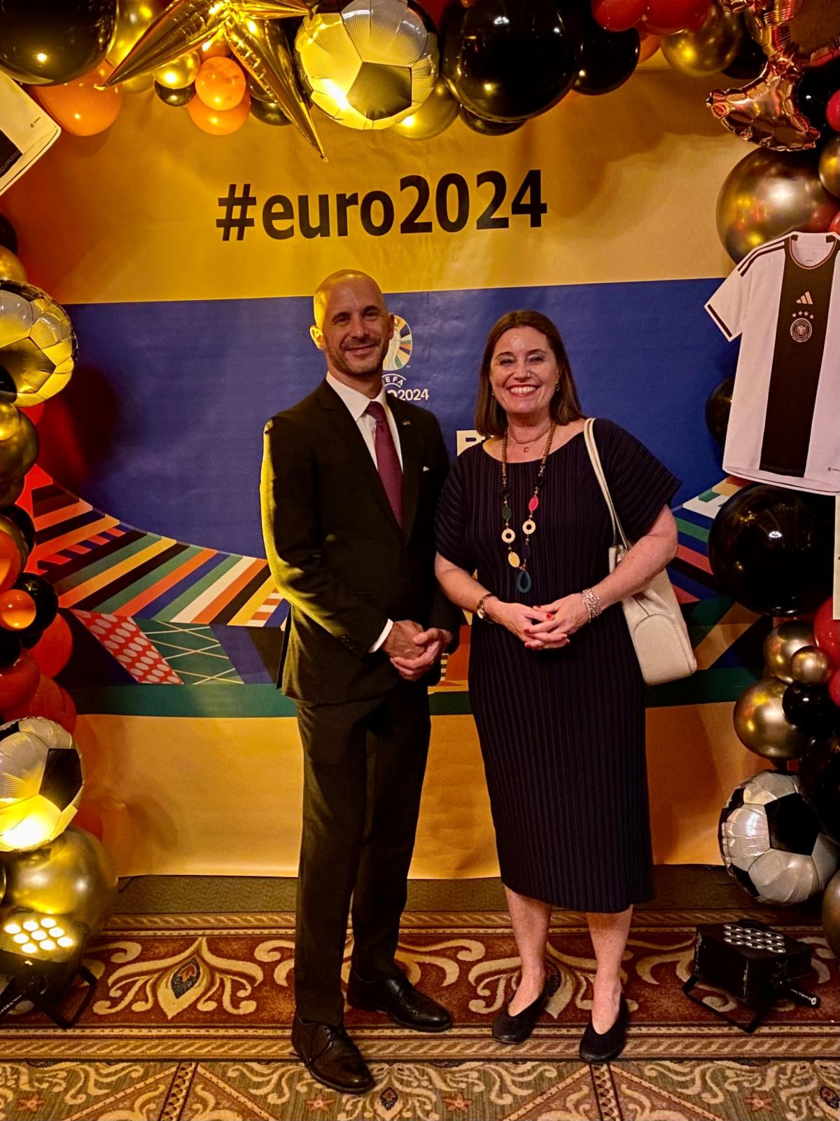 In a geo-political speech, the Consul General reminded us of the challenges our global community is facing and of the shared responsibility of the United States, EU, Germany and their allies in maintaining stability. The Consul General thanked Miami’s local community in English and Spanish for the warm welcome afforded to him and used the opportunity to remind his guests that Germany will be staging the UEFA European Soccer Championship in 2024.