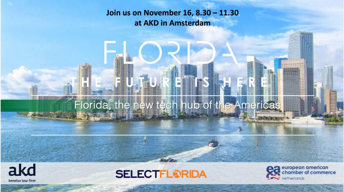 Join EACC Netherlands and Select Florida in Amsterdam on November 16, 2023 to learn about why Florida is trending with a focus on technology, energy and cleantech sectors.