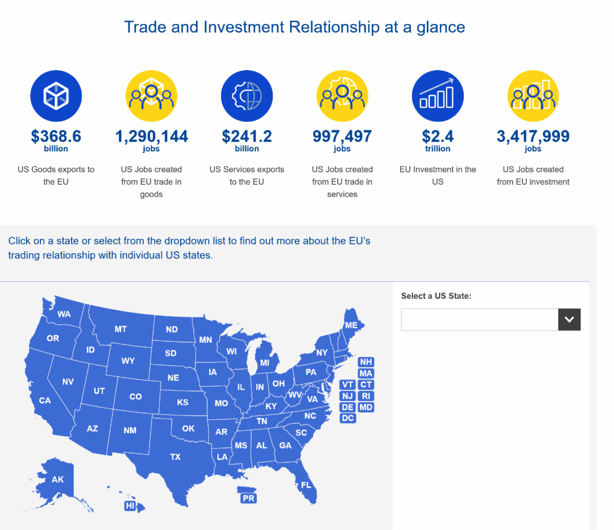 Click on the image to find out more about the EU-U.S. trade relationship, state by state. | |