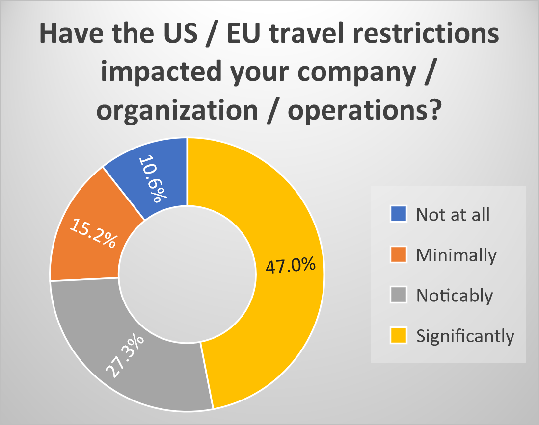 Nearly 90% of respondents said the restrictions impacted their company/organization/operations, with over 74%answering that the impact had been ‘significant’ or ‘noticeable’.
